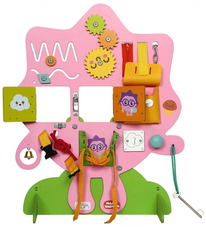 «Умная доска» – детская развивающая доска, на которой закреплены предметы, обычно окружающие ребенка. Это элементы, которые вызывают интерес малыша, но играть с ними ему не разрешают из соображений безопасности. Что обычно располагается на основании игрушки: