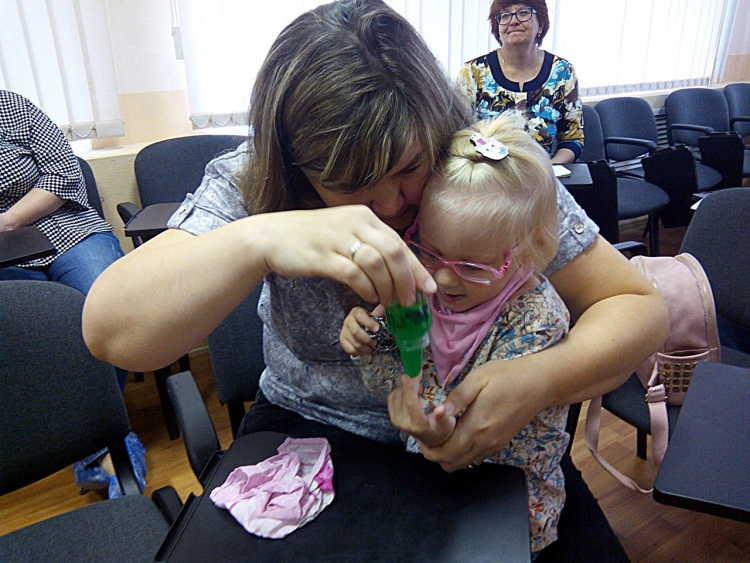 Мастерская прошла по подгруппам, с участием детей, которые смогли за время мастерской обследовать массу интересных восприятий и ощущений.