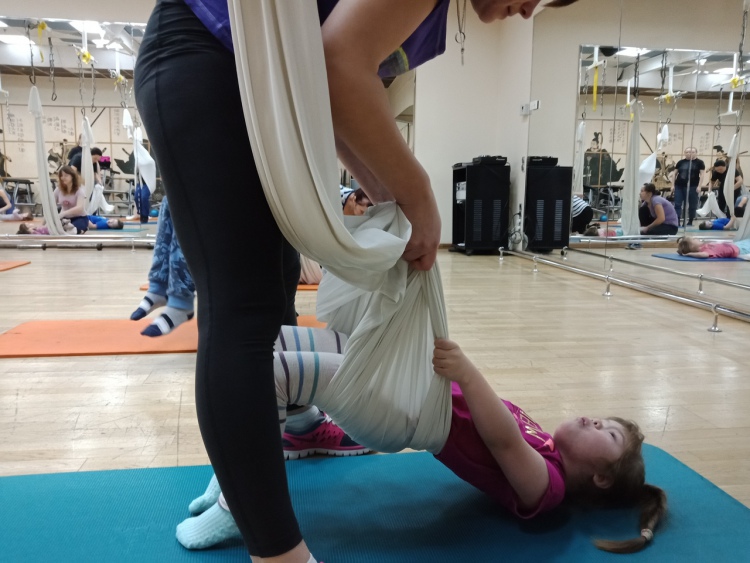 Йога в гамаках - это целый час детской радости, материнской нежности и безмерного счастья.