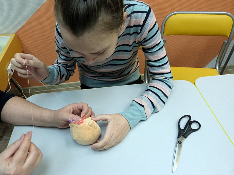 Дети с интересом и большим усердием скатывали шарики из специального материала и наполняли заготовки игрушек. Каждый участник смог почувствовать себя мастером "швейного" игрушечного производства. На мини-фабрике игрушек все вместе создавали свою игрушку-друга.