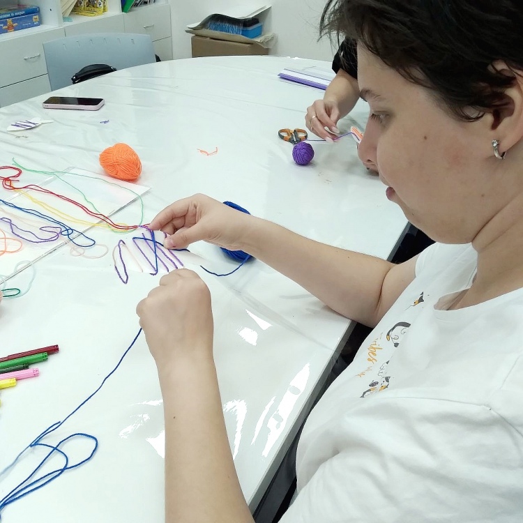 Вторая группа отличалась особым весельем. Ребята активно общались и смеялись, создали по две рыбки каждый, а один из участников даже исполнила песню, за что удостоилась аплодисментов.