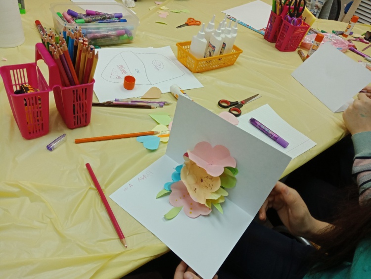 happiness.to.live@mail.ruСегодня на Арт-терапии "Цветочная полянка" в Библиотеке возможностей невероятно повеяло весной. А все потому, что все участники были заняты изготовлением цветов для 3D открыток.