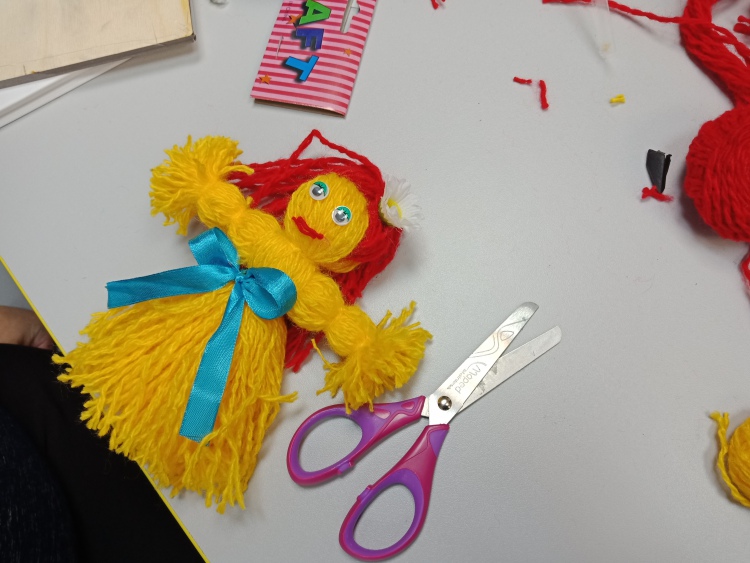 Играя с куклой, ребенок наполняет её душевный мир по своему усмотрению. Кукла может быть ласковая и веселая, умная и послушная. Она как заместитель идеального друга и может быть партнером по общению в игре. На мастерской каждый участник своей получившейся кукле добавил неповторимый элемент (прическу, аксессуар в виде цветка или разноцветной ленты и т.д.). Куклам-мотанкам были придуманы имена, а некоторым даже и фамилии. Все они получились очень разные и со своим характером.