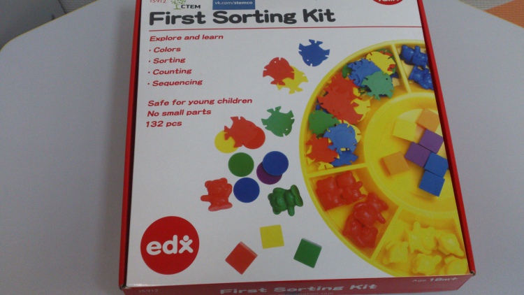 "Моя первая сортировка" - набор "First Sorting Kit" разработан специально для привлечения ребенка к получению знаний через практический опыт. Веселые медведи, тропические рыбки, фишки и кубики разных цветов изготовлены из качественного прорезиненного пластика, приятные на ощупь и совершенно не скользят в руках. Все элементы находятся в круглом лотке с делением на 7 секций, который закрывается прозрачной крышкой, что очень удобно для хранения.