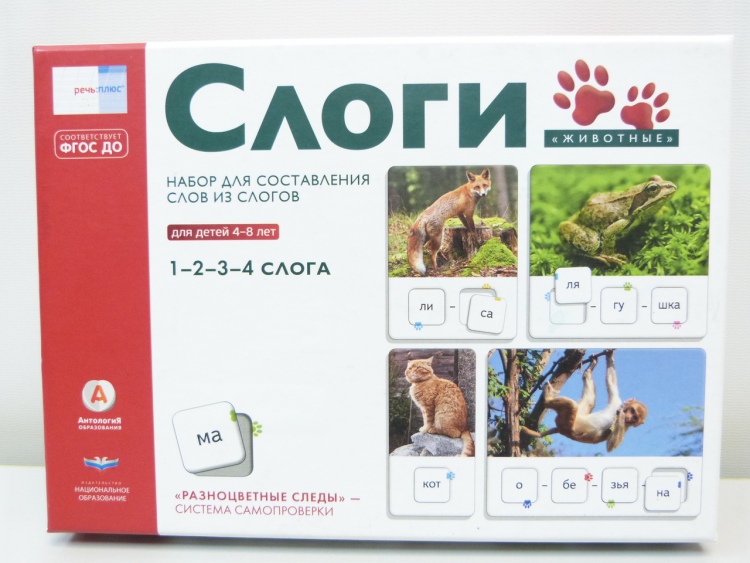 happiness.to.live@mail.ruС карточками «Слоги. Животные» дети легко и самостоятельно усвоят: каждое слово состоит из слогов. «Разноцветные следы» не позволят ребенку ошибиться: если фишки-слоги вставлены в окошки верно, половинки цветного следа сойдутся. В наборе 28 карточек с изображениями животных и 64 фишки-слога.
