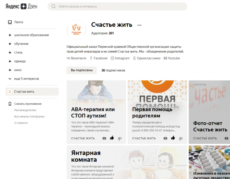 Вы ещё не подписаны на Счастье жить в Яндекс.Дзен?